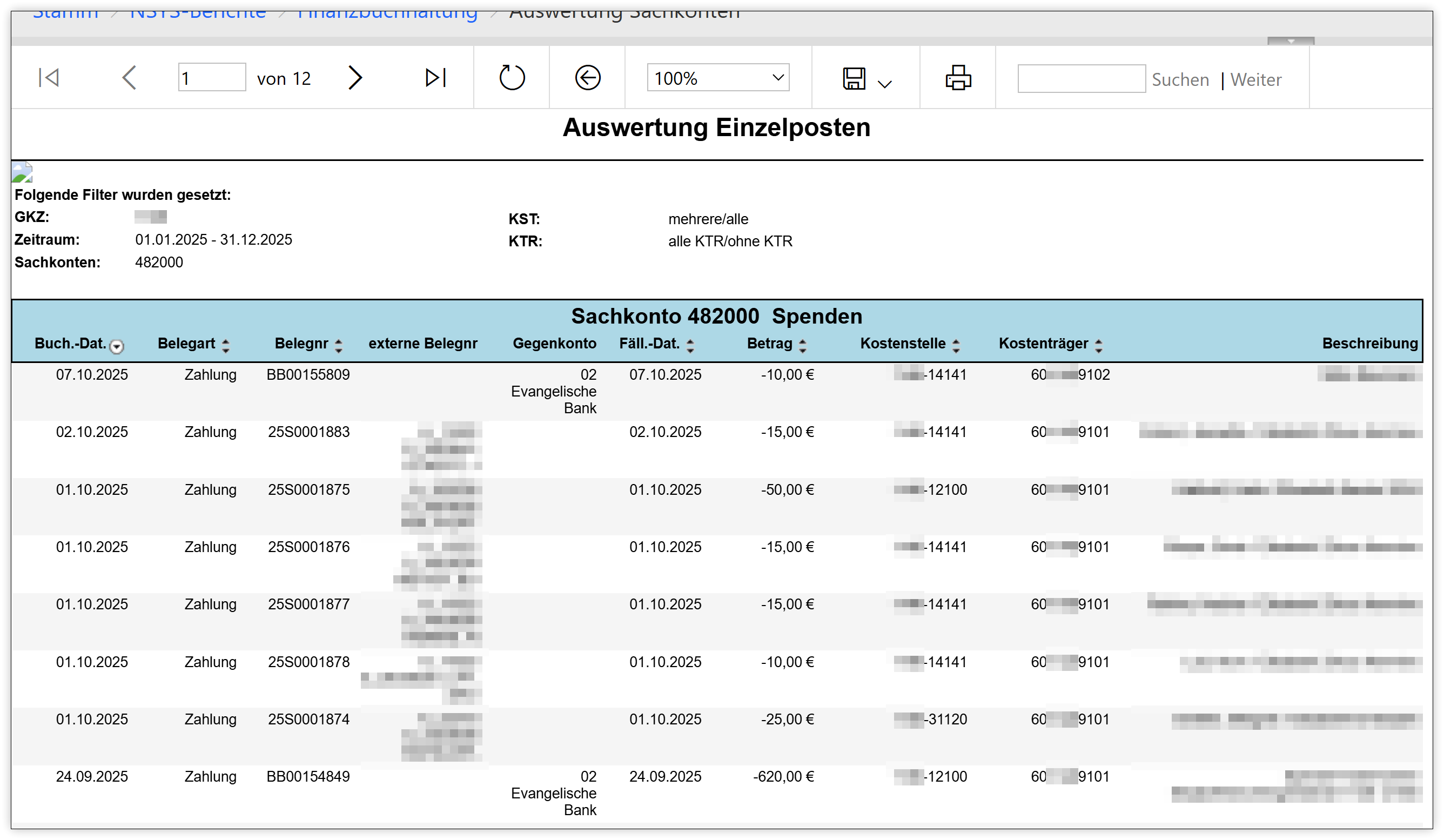 Mit den Webberichten haben Sie die Möglichkeit, verschiedene Berichte anzuzeigen und sich so einen Überblick über einzelne Kostenstellen, Sachkonten oder bspw. offene Posten zu geben. Auf dieser Seite möchten wir Ihnen die Auswertung „Auswertung Sachkonten“ am Beispiel des Sachkontos für die Spenden näher vorstellen.